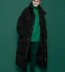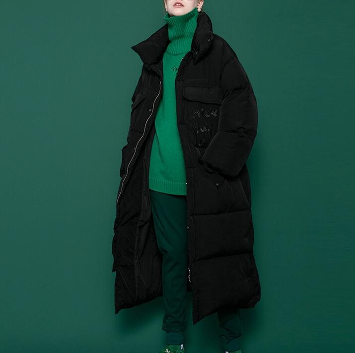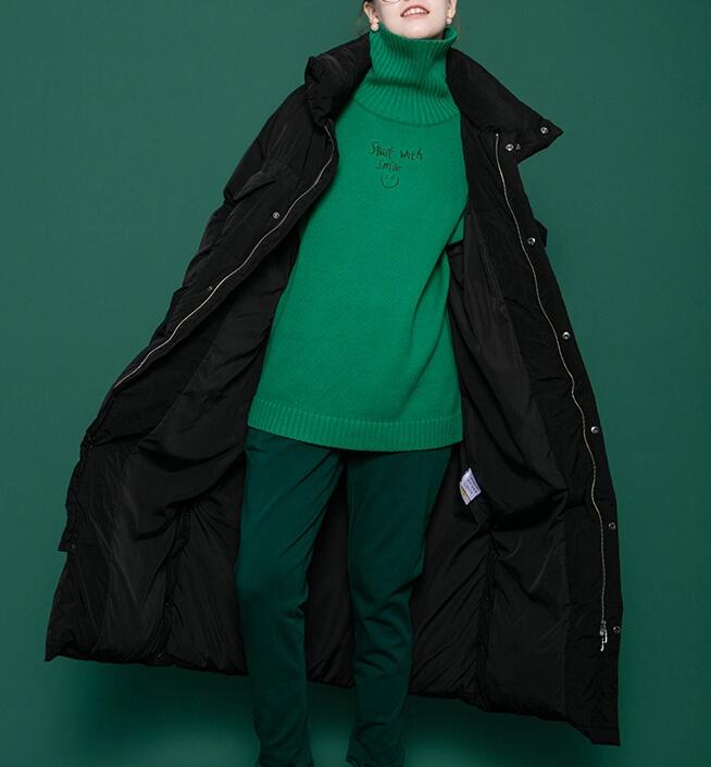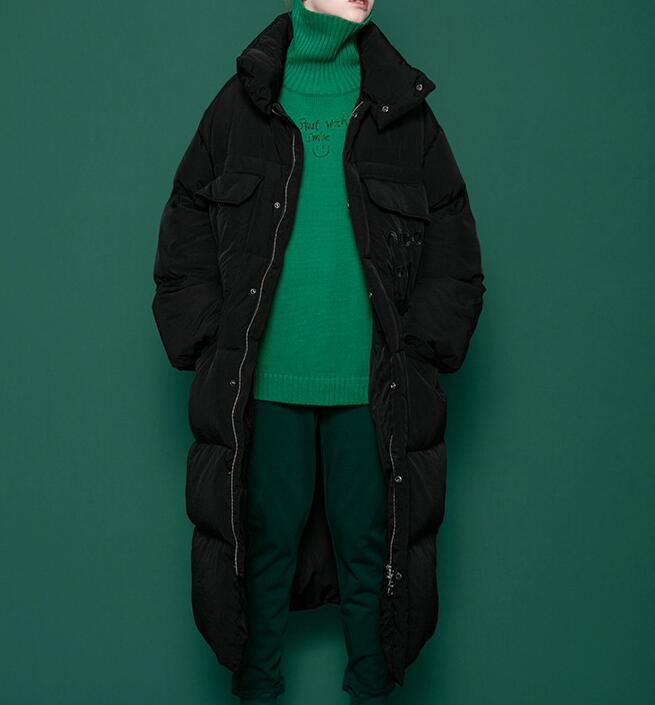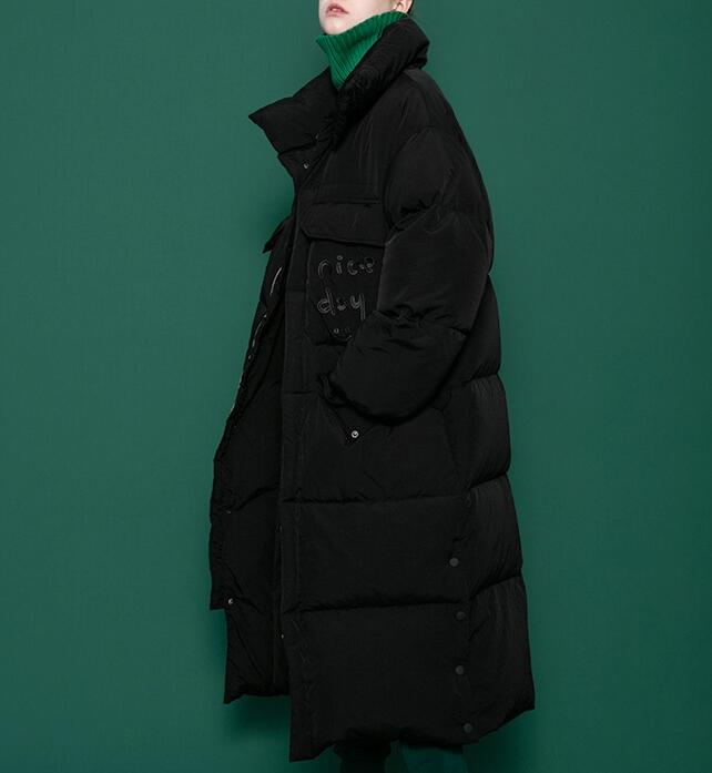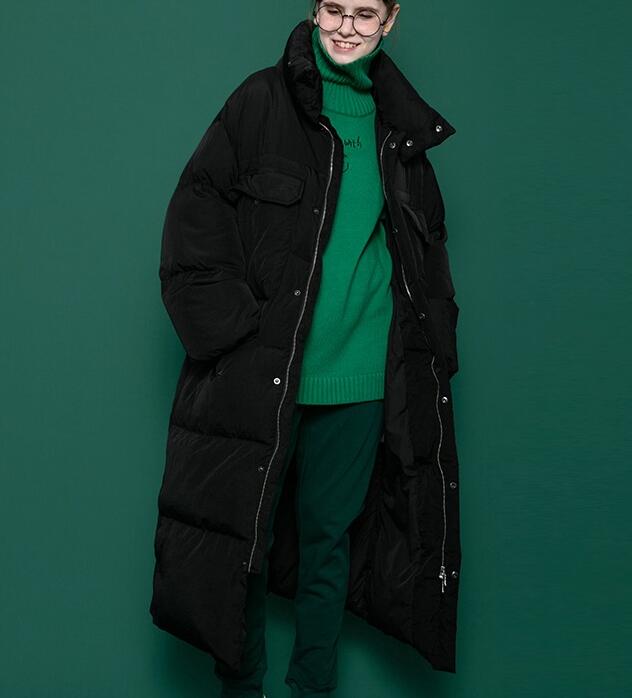 Black Long Women Winter Plus size Side Pockets Down Jacket Women Down Coats Any Size