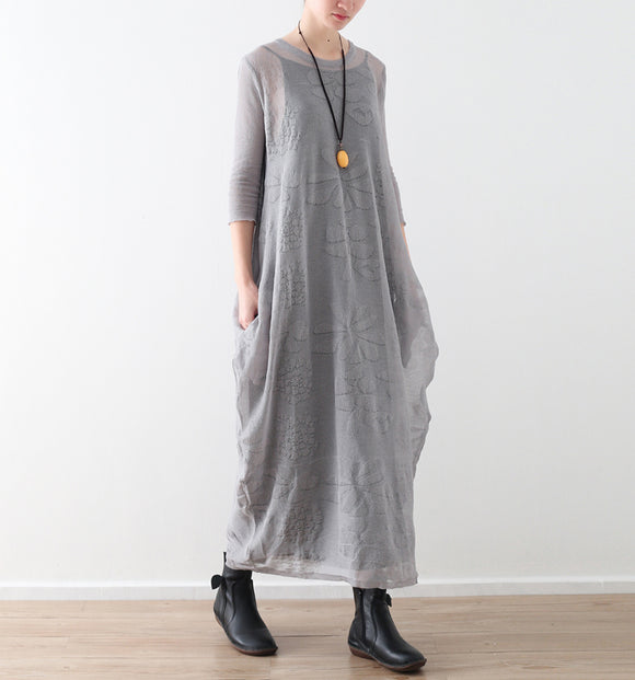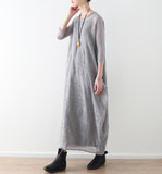 Casual Linen Cotton Women Loose Fitting Short Sleeves Dresses Summer Long Women Dresses AMT962218