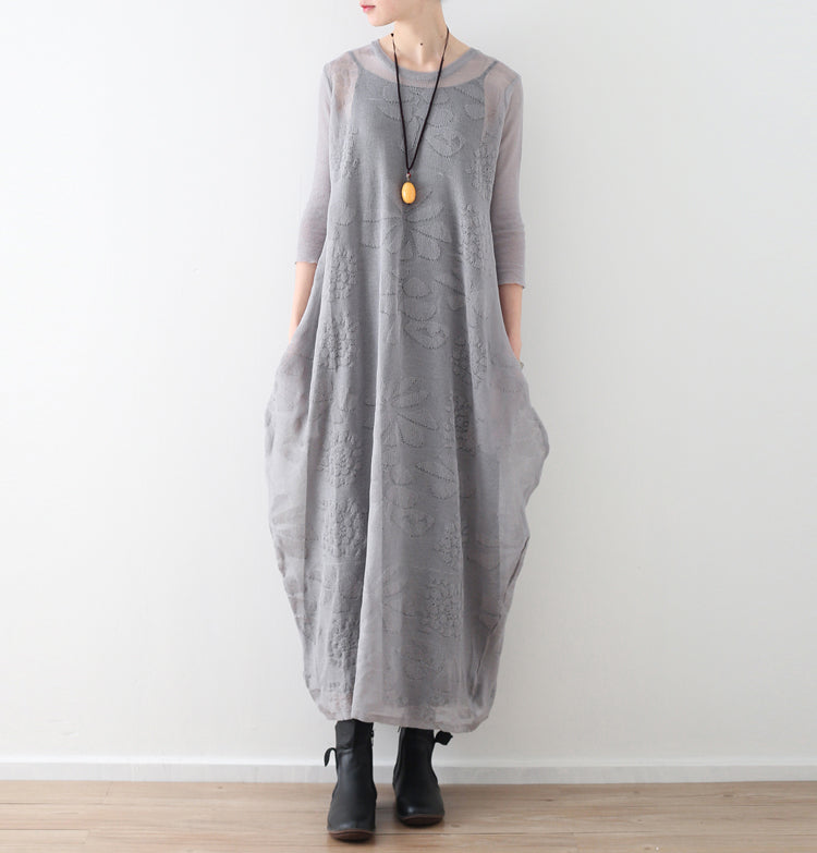 Linen Organic color Loose Style linen Spring summer Women Dresses.loose style,soft and breathy organic cotton linen fabric,very special with it's waist pleated design.this women dresses also could be custom made any size.