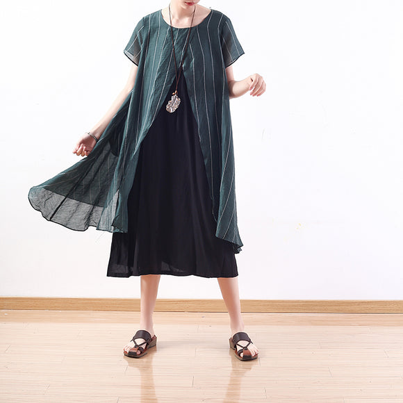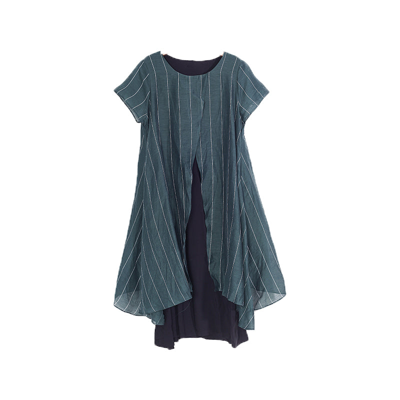 Layered Casual Linen Cotton Women Loose Fitting Short Sleeves Summer Women Dresses AMT962228