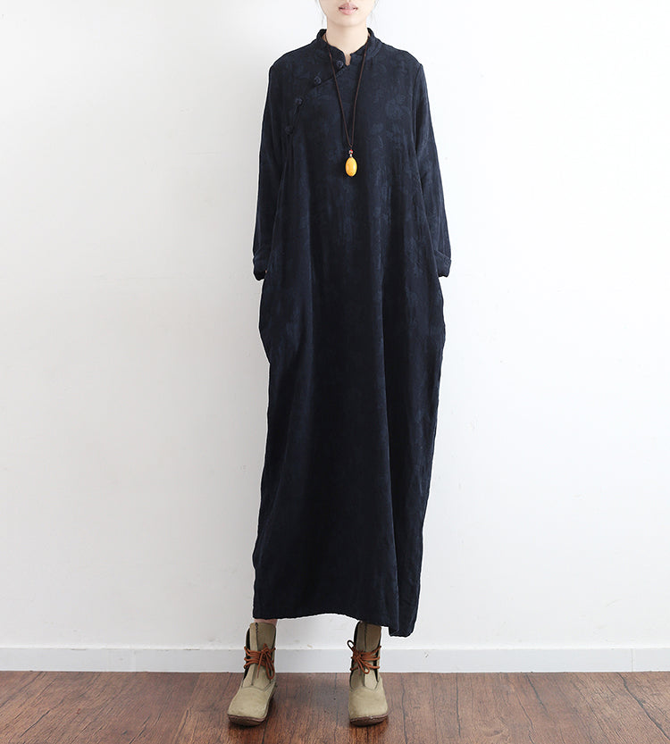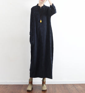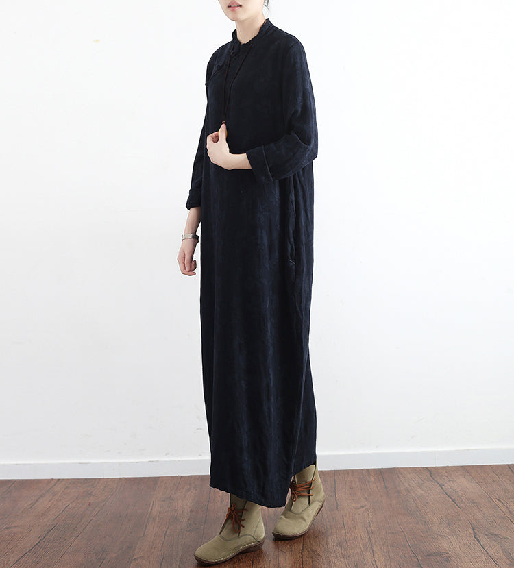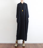 Black Casual Linen Cotton Women Loose Dresses Summer Long Women Dresses With Long Sleeves AMT96231