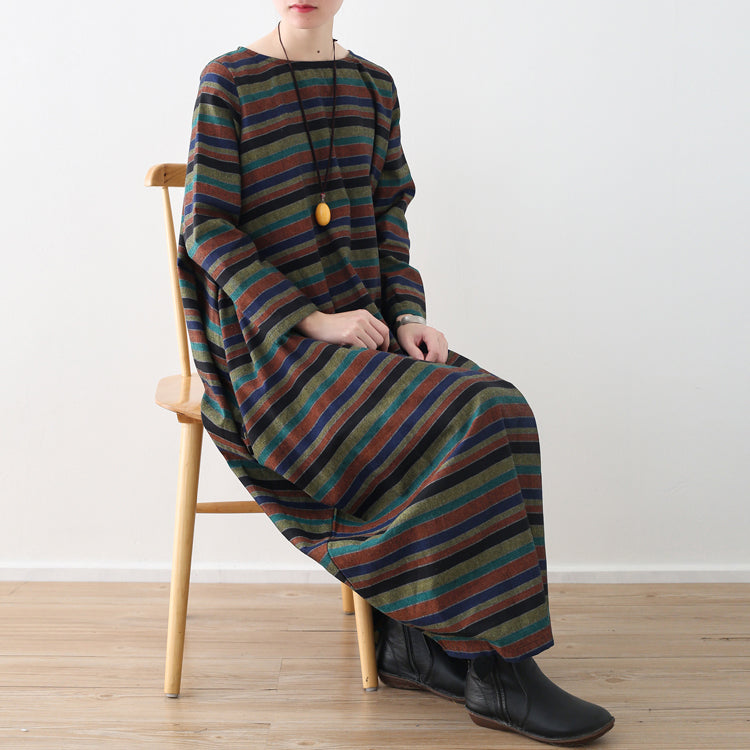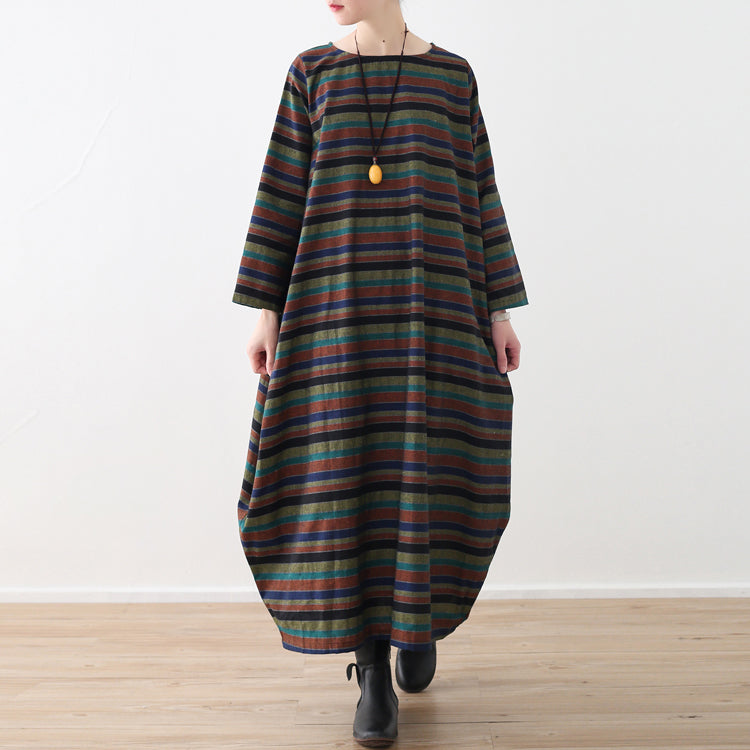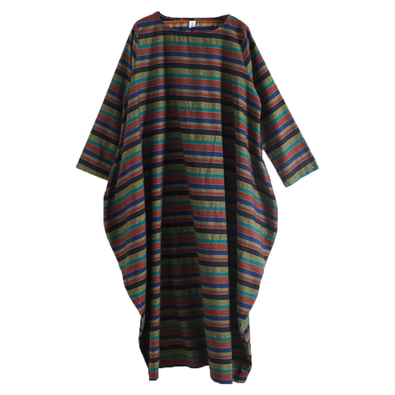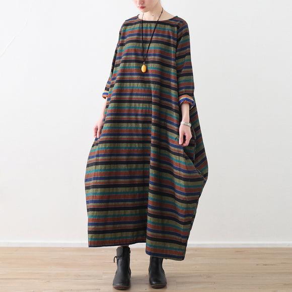 Stripe Casual Linen Cotton Women Loose Dresses Summer Long Women Dresses AMT96232