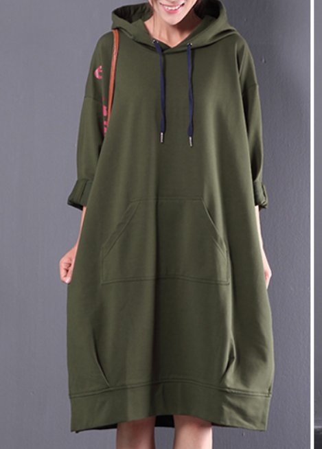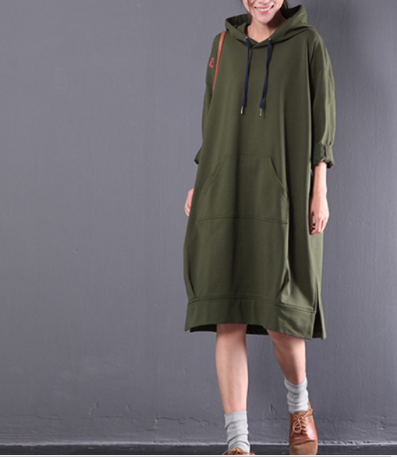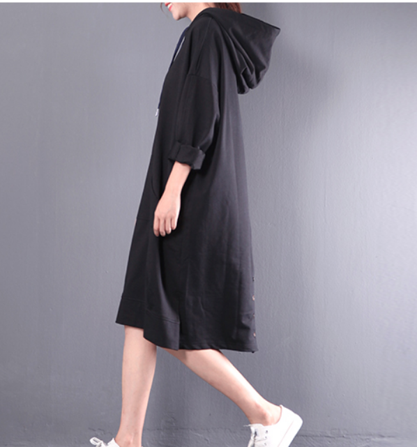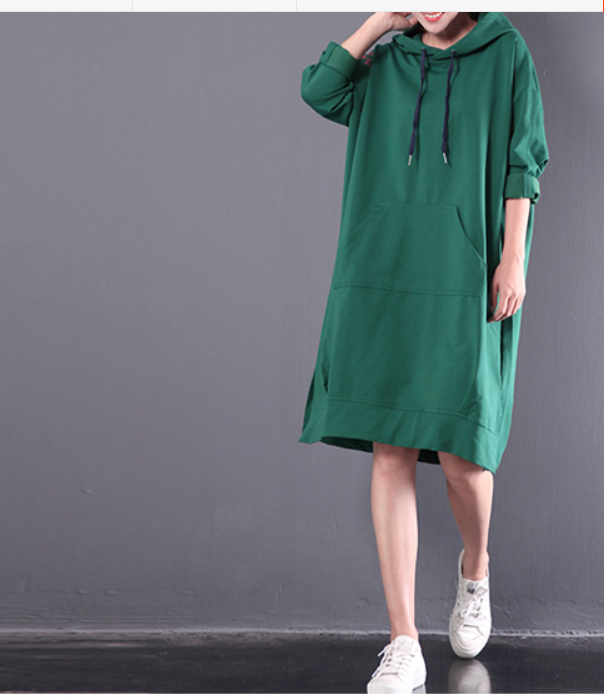 Women Dresses Casual Cotton Hooded Women Dresses Long Sleeve WG97215