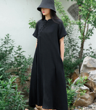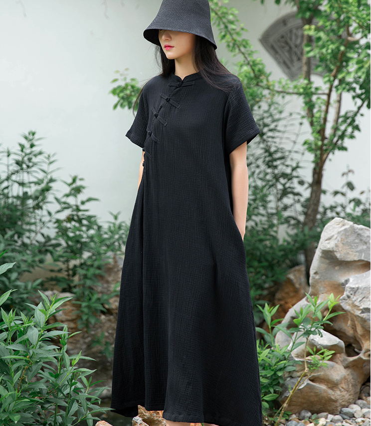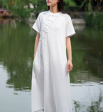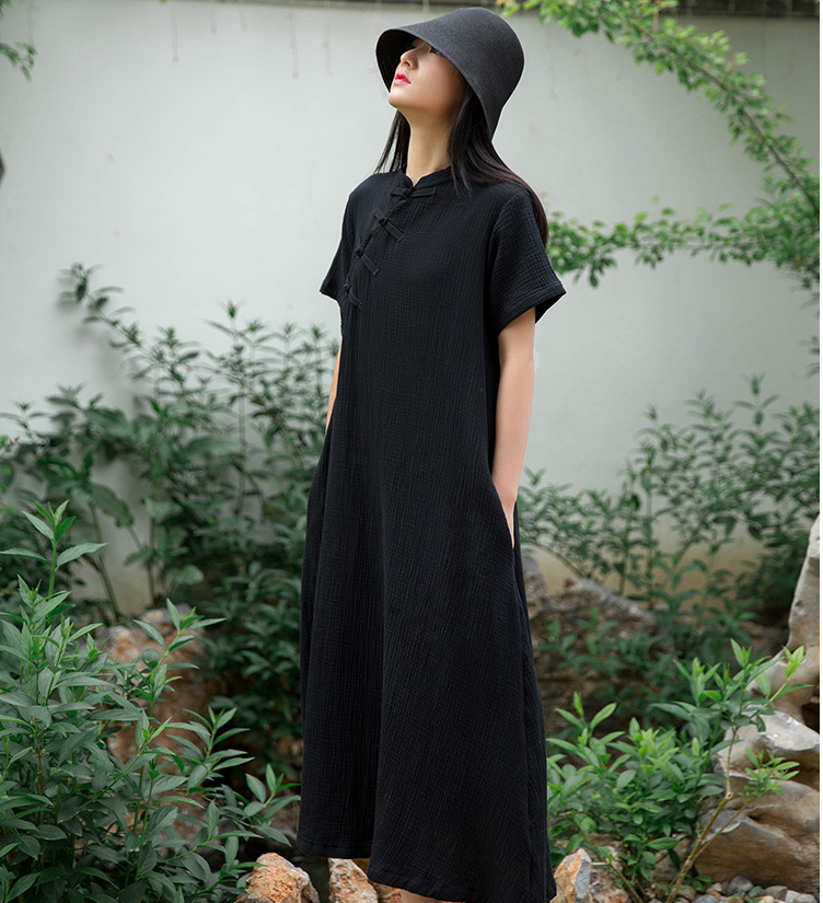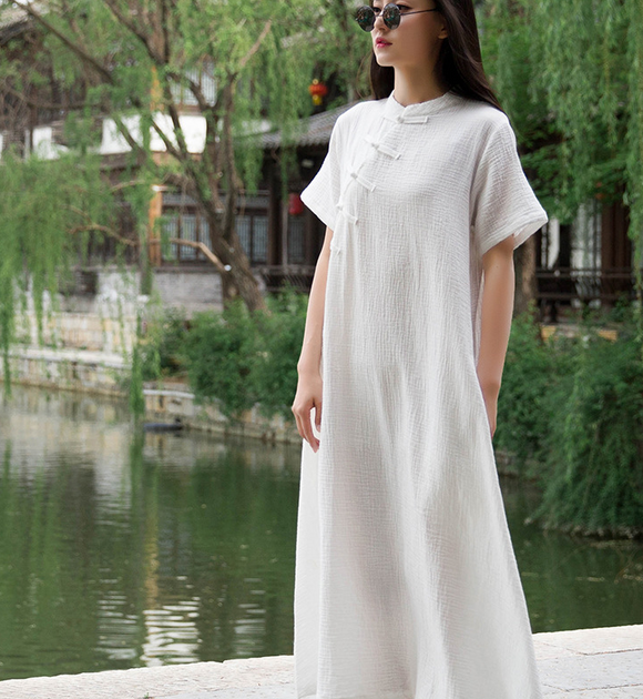 Women Dresses Casual Linen Cotton Women Dresses Loose Style Chinese Buttons BXF97215