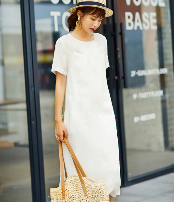 Linen Organic color Loose Style linen Spring summer Women Dresses.loose style,soft and breathy organic100% linen fabric,very special with it's loose design.this women dresses also could be custom made any size.