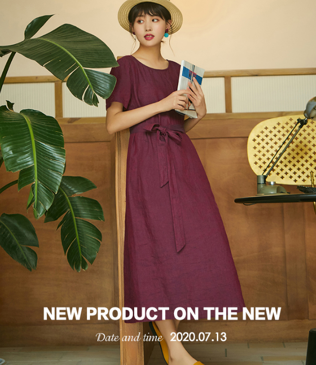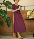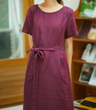 Red Women Dresses, Summer Linen With Belt, Mid Length Women Dresses 7215