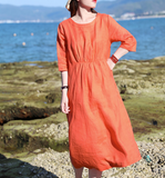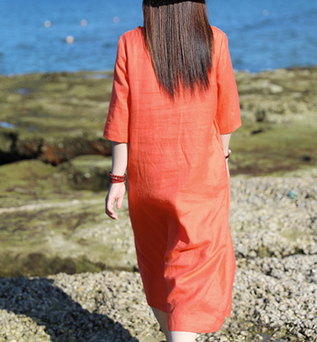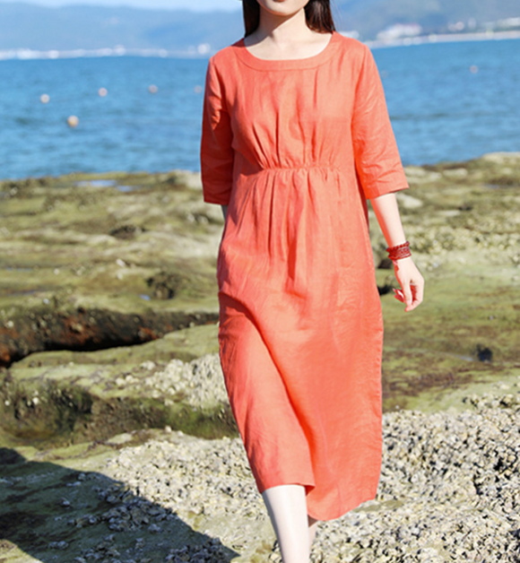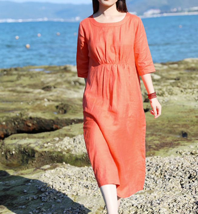 Orange Women Dresses Casual Summer Linen Women Dresses SJ97215