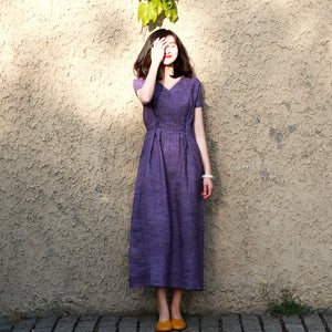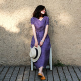 Purple V Neck Summer Women Dresses Short Sleeve Dresses MDYP9751