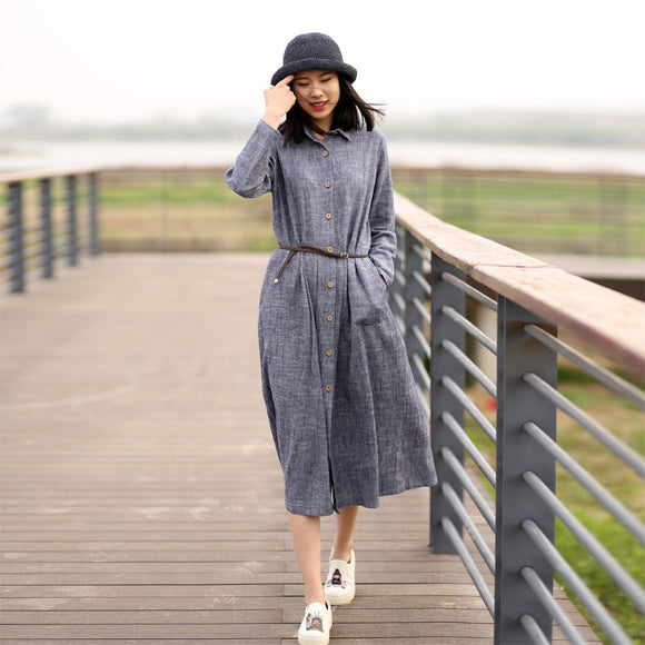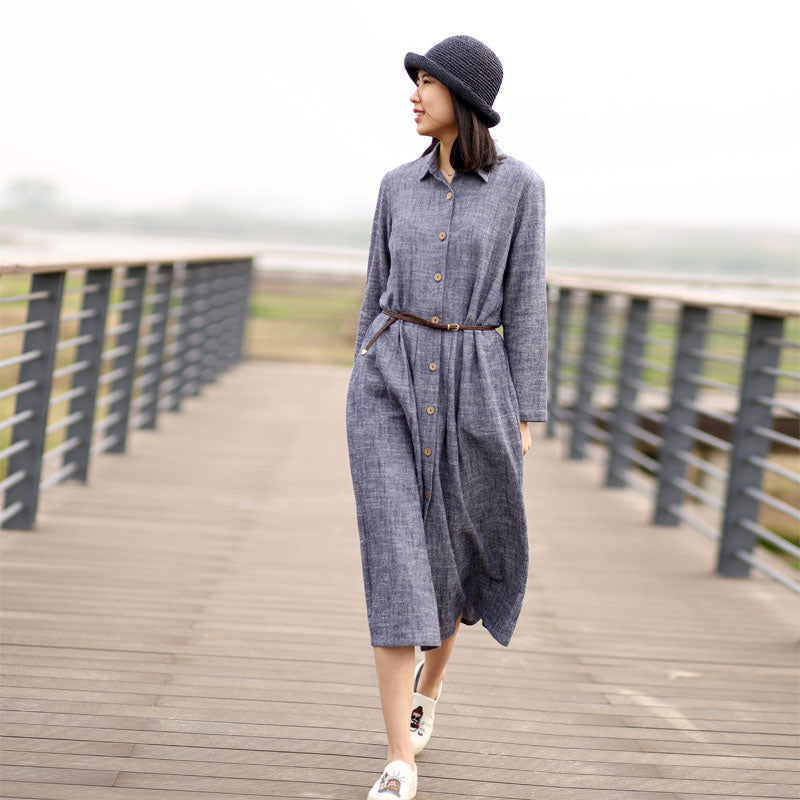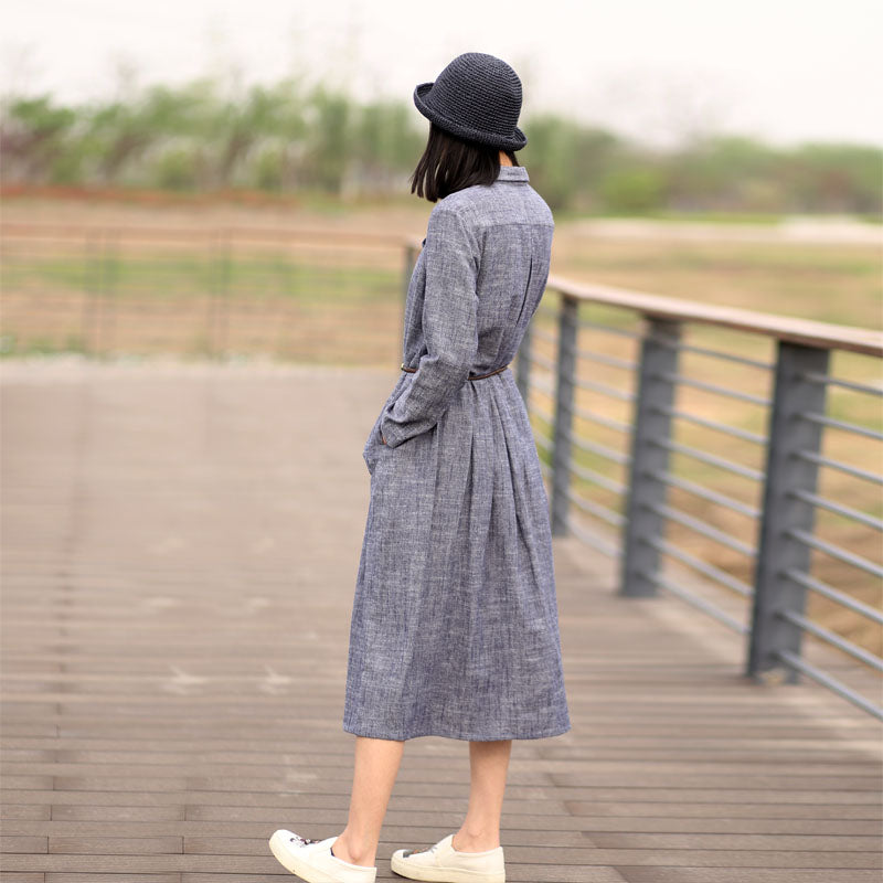 Gray Linen Women Dresses Casual Summer Long Women Dresses SSM97215