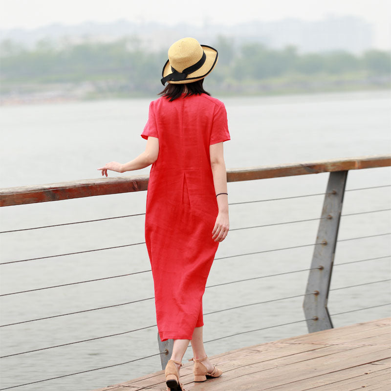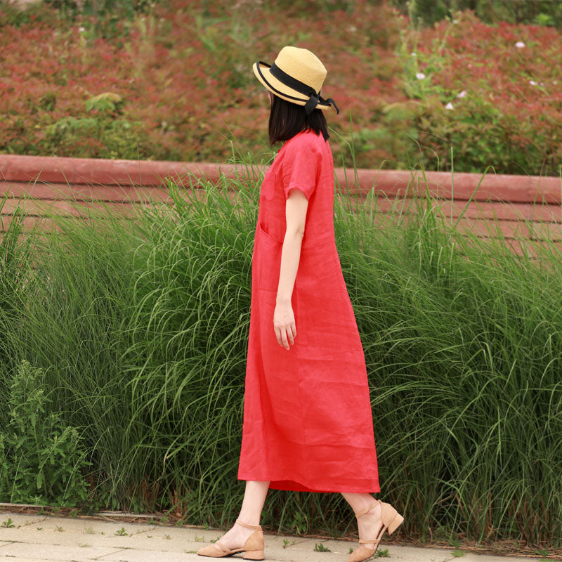 Linen Organic color Loose Style linen Spring summer Women Dresses.loose style,soft and breathy organic cotton linen fabric,very special with it's loose design.this women dresses also could be custom made any size.