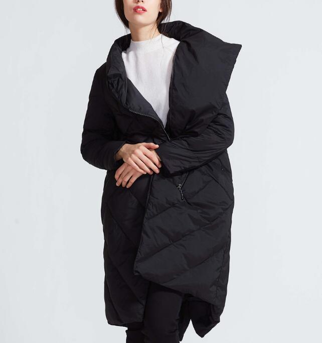 This is a winter down jacket fill with down.we design it with a very thick and warm style.this hooded down jacket could keep you very warm in the cold winter.the side pockets is very useful.a unique design women winter coat.