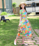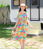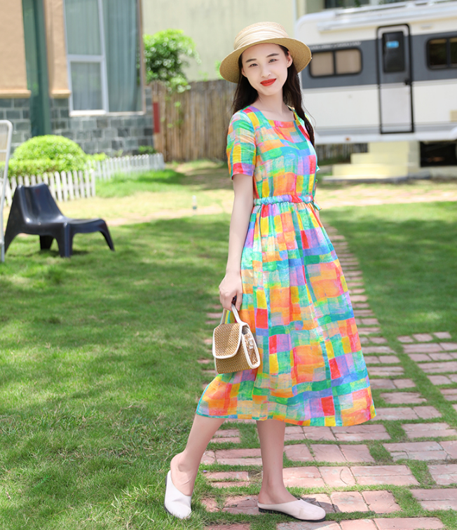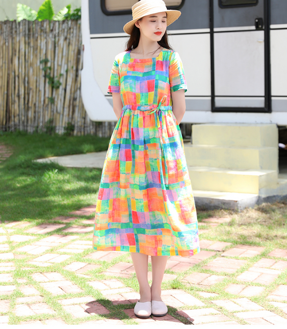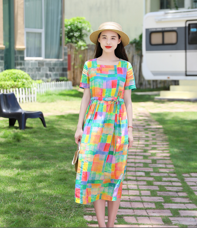 Yellow Floral Women Dresses Casual Summer Linen Women Dresses SJ97215