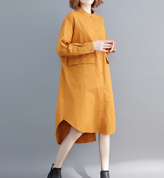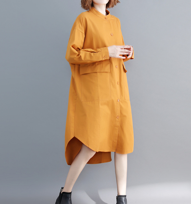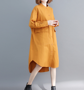 Yellow Shirts Plus Size Dresses Casual Loose Women Dresses SSM97215